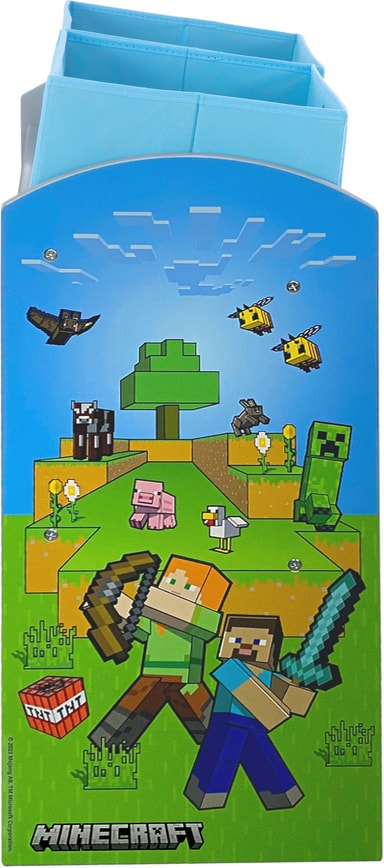 Phoenix Minecraft-spelhylla förvandlar ditt barns rum till ett pixlat äventyr med sin autentiska design, hållbara MDF-konstruktion och praktisk förvaring med fyra små och en stor tygbox för leksaker och böcker.Läs mer om produkten