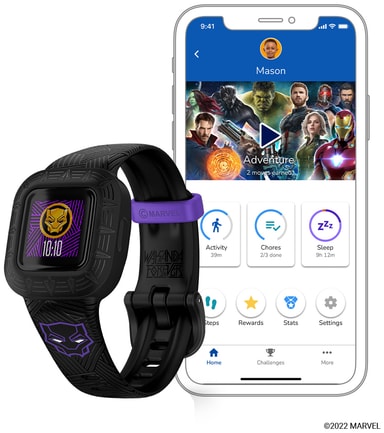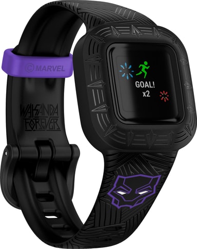 • Garmin Vivofit Jr. 3 aktivitetsmätare för barn (Black Panther Edition)