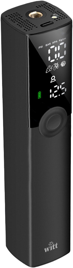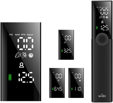 Witt Compact cykelpump MP102279 är ett lätt, USB-C uppladdningsbart verktyg utformat för enkel användning med en hand. Den fungerar med flera olika ventiltyper, har digital tryckmätare, LED-lampa och automatisk avstängning, vilket gör den till ett praktiskt val för pumpning av däck, bollar och andra uppblåsbara föremål.