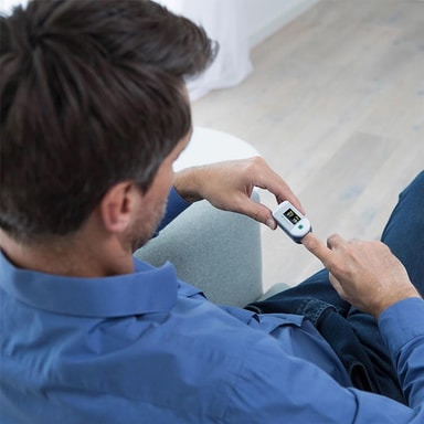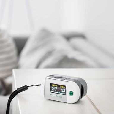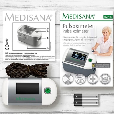 Medisana PM 100 är en pulsoximeter som främst mäter syremättnaden (SpO2) i blodet och indikerar hur mycket av det röda blodämnet hemoglobin som är lastat med syre. Den är enkel och snabb att använda med endast ett knapptryck för att du skall få se ditt resultat. PM 100 mäter även din puls/hjärtfrekvens och passar perfekt för såväl hemmet som på resan, i synnerhet för personer med hjärt- eller lungproblem. Den är även lämplig för idrottare som utövar sport på hög höjd (som exempelvis bergsklättring, cykling och skidåkning).