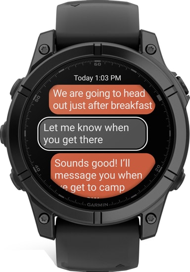 Para ihop din smartphone med Fenix ​​E, installera Garmin Messenger-appen och skicka meddelanden direkt från klockan.