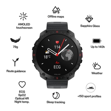 • Polar Grit X2 Pro sportklocka S-L med pulsgivare (svart)
