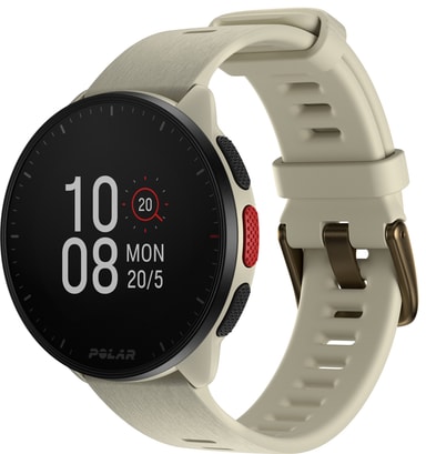 Polar Pacer är en lätt enhet som mäter dina dagliga aktiviteter som steg, puls och flera sporter. Klockan kan anslutas till din smartphone via Polar Flow-appen och använda din telefons GPS för att ge korrekt data. Den passar även för simmare då den är vattentålig ned till 50 meter.