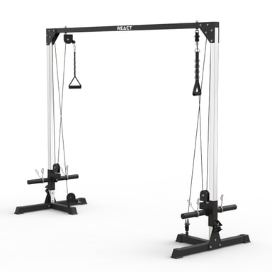 Uppgradera din träningsrutin med den mångsidiga och robusta React Kryssdrag Maskin. Denna högkvalitativa cable cross maskin är designad för att erbjuda en omfattande träningsupplevelse vilket gör den till ett oumbärligt verktyg i varje gym. Med förmågan att rotera handtagen 180 grader och använda viktplattor på både 30 mm och 50 mm, garanteras en flexibel och anpassningsbar träning. Den robusta konstruktionen i stål håller för upp till 300 kg, vilket gör att både nybörjare och professionella atleter kan utföra sina övningar med maximal effektivitet.