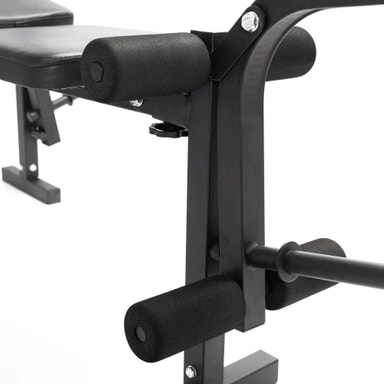 Med den här justerbara viktlyftningsbänken kan du träna alla muskelgrupper effektivt och säkert! Den starka och robusta stålramen ger den multifunktionella träningsbänken för tyngdlyftning en balanserad känsla. Den konstläderpolstrade sitsen och de stöd för skinkor och lår ökar användarkomforten. Handtagen på bänkens sidor gör att du kan träna dina bröstmuskler på olika sätt.