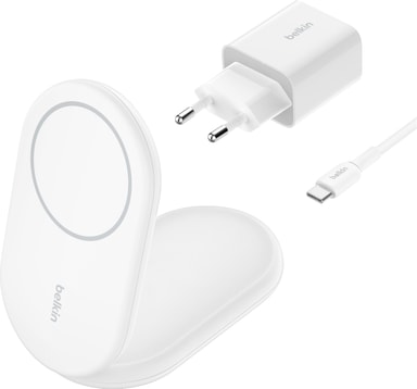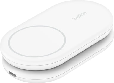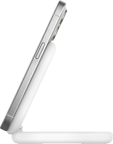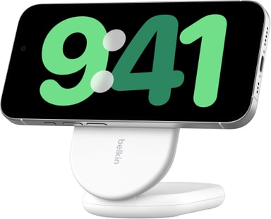 • Belkin BoostCharge Qi2 magnetiskt vikbart laddningsställ (vit)