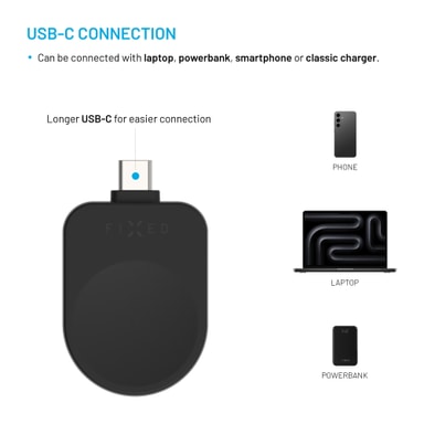 Gör din Samsung Watch redo för äventyr med den snygga och pålitliga Fixed Apple Watch trådlös USB-C-laddare. Den är designad med en slät, mjuk laddningsyta som säkerställer att din klocka laddas säkert och bekvämt.Läs mer om produkten