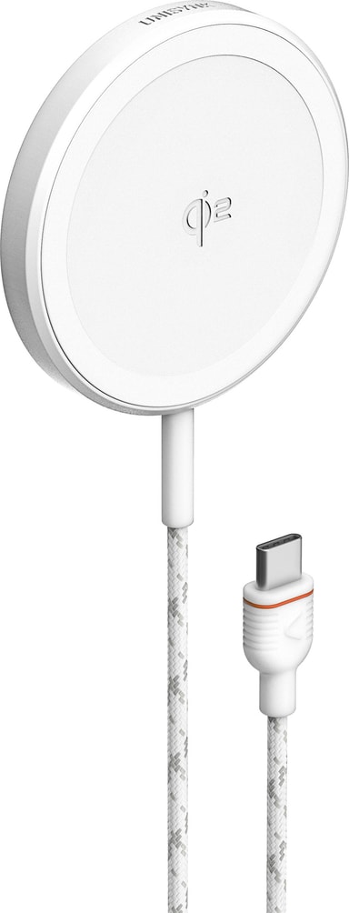 • Unisynk Qi2 15 W trådlös laddare (vit)