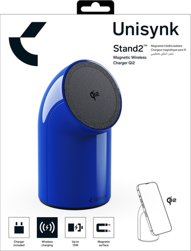 • Unisynk Stand2 Qi2 trådlös skrivbordsladdare (blå)