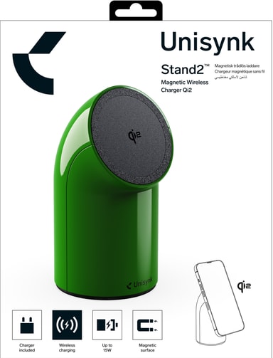 • Unisynk Stand2 Qi2 trådlös skrivbordsladdare (grön)
