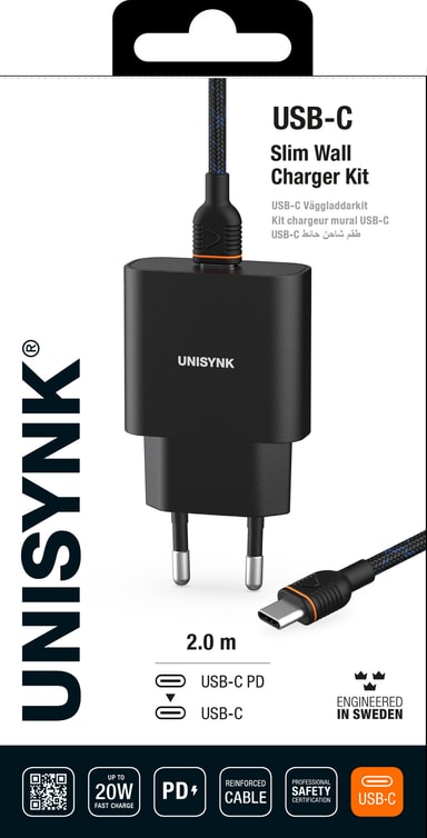 • Unisynk USB-C Slim väggladdningskit (svart)
