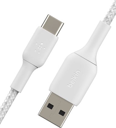 • Belkin BOOST CHARGE USB-C till USB-A flätad kabel 2m (vit)