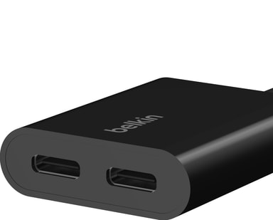 Ladda din enhet och lyssna på din favoritmusik samtidigt med Belkin USB-C-ljud- och laddningskabel. Kontakten ansluts till din enhet via USB-C och erbjuder två USB-C-honkontakter, en för din laddningskabel och en för dina hörlurar.Läs mer om produkten