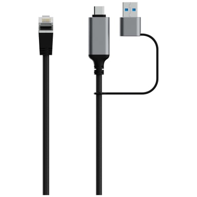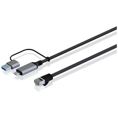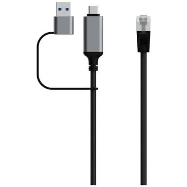 • Sandstrøm USB-C till Ethernet + USB-A-kabel (2m)