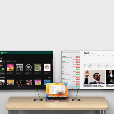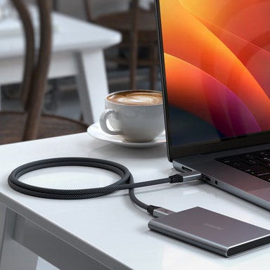 Denna Satechi USB-C 4-kabel 1,2 m ger dig upp till 8K videoupplösning och 40 GBps dataöverföringshastighet. Du kan även använda den för att ladda din iPad eller Mac med upp till 240 W effekt.
