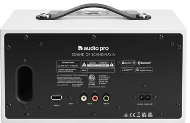 Anslut högtalaren till annan enhet trådlöst antingen via Wifi 5 eller via Bluetooth 4.2. Enheten är kompatibel med AirPlay2, Google Cast, Spotify Connect och Audio Pro Multiroom-system. Du kan till och med ansluta två högtalare för att skapa en konsertliknande upplevelse mitt i vardagsrummet.
