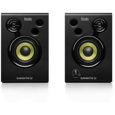 Hercules DJMonitor 32 Monitorhögtalare Aktiv 7.6 cm 3 tum 30 W 1 par2 x 15 W uteffekt, 60 W toppeffekt förbättrad akustik-guide för hög prestanda hölje av trä.7,6 cm (3-tums) bashögtalare · Förskjuten diskanthögtalare för tydlig återgivning ochLäs mer om produkten