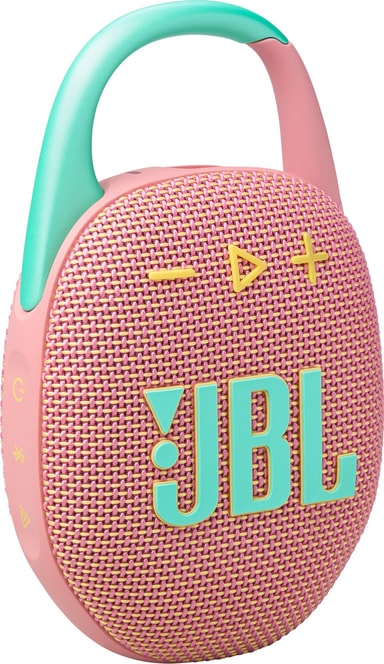 JBL Clip 5 bärbar högtalare är ett bevis på att fantastiska saker kan komma i små storlekar. Med en skyddsklass på IP67 kan du ta med den var som helst utan att behöva oroa dig för vatten eller damm, och du får upp till 12 timmar på en enda laddning och 3 extra timmar med Playtime Boost. Musiken förstärks av JBL Pro Sound, och du anpassar inställningarna bekvämt via JBL Portable smart app och kopplar ihop flera kompatibla högtalare med Auracast.
