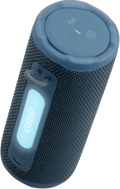 JBL Grip är lätt att greppa och hålla. Den levererar stort JBL Pro-ljud var du än är, med kraftfull bas, kristallklar diskant och perfekta vibbar. Det inbyggda bakgrundsljuset på bakpanelen anpassar sig till ögonblicket, så att du kan ställa in stämningen för avslappnade dejtkvällar och spontana umgängen. Med en branschledande IP68-klassificering och en fallsäker design är den byggd för alla äventyr. Och med Playtime Boost kan du hålla igång musiken i upp till 14 timmar.