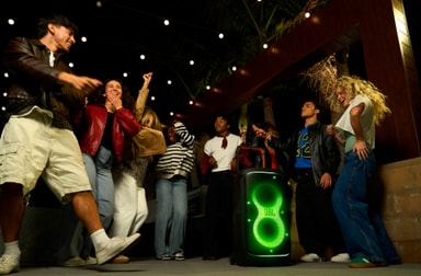Större fester kräver ännu större ljud. Parkoppla två PartyBox 520 för äkta stereovibbar via Auracast™, eller anslut flera högtalare med JBL Auracast™ trådlöst och låt musiken växa med festens storlek.