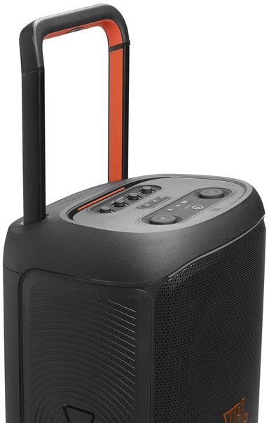 Det praktiska teleskophandtaget och de robusta hjulen gör det enkelt att ta med dig festen vart du vill.