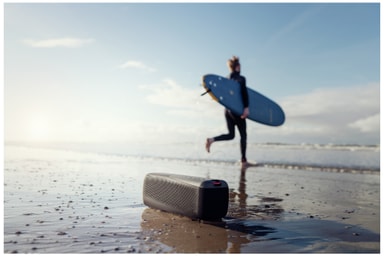 IP67-klassificeringen betyder att din högtalare tål de flesta av naturens element. Helt damm- och vattentät, den här högtalaren fortsätter att spela även om den är nedsänkt i vatten.