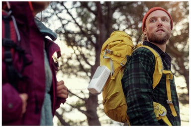IP67-klassificeringen betyder att din högtalare tål de flesta av naturens element. Helt damm- och vattentät, den här högtalaren fortsätter att spela även om den är nedsänkt i vatten.