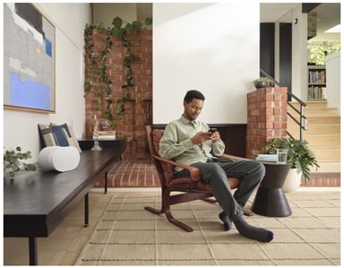 Den banbrytande akustiska designen har sex optimalt placerade högtalarelement runt hela framsidan, sidorna och ovansidan för att ge stöd för Dolby Atmos-musik och projicerar ljudet från vägg till vägg och från golv till tak, så att du kan uppleva alla dimensioner av en låt.