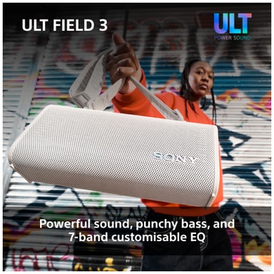 Vi presenterar ULT FIELD 3, för ett imponerande, rumsfyllande ljud från en bärbar design, som kan skräddarsys efter dina önskemål i Sony Sound Connect-appen. Tryck på ULT-knappen för att få ULT POWER SOUND-upplevelsen.