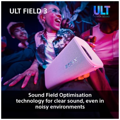 Sony ULT Field 3 bärbar högtalare levererar intensivt kraftfullt ljud i ett kompakt, hållbart paket. Anslut dina smarta enheter via Bluetooth och njut av dina favoritlåtar eller podcast. Med 24 timmars speltid, ULT Power Sound och IP67 damm- och vattentät klass, är denna bärbara högtalare den perfekta följeslagaren för att lyssna på musik hemma, utomhus eller på resan.