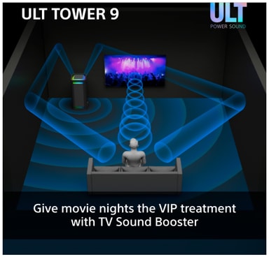 När den inte används för musik kan ULT Tower 9 enkelt anslutas till de flesta TV-apparater med den medföljande optiska kabeln. Tryck bara på TV Sound Booster-knappen för att njuta av en kraftfull, filmisk ljudupplevelse.