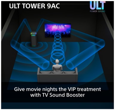 När den inte används för musik kan ULT Tower 9AC enkelt anslutas till de flesta TV-apparater med den medföljande optiska kabeln. Tryck bara på TV Sound Booster-knappen för att njuta av en kraftfull, filmisk ljudupplevelse.