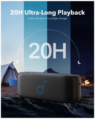 Njut av högkvalitativ musik på språng med Soundcore Select 3 bärbara trådlösa högtalare. Förbättra ditt ljud med BassUp-funktionen och anslut upp till 100 högtalare tillsammans med PartyCast. Lyssna på musik länge tack vare 20 timmars batteri.Läs mer om produkten