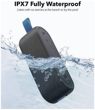 Placera din högtalare var som helst utan att oroa dig för vattenstänk. Den vattentäta IPX7-klassificeringen säkerställer att din högtalare till och med kan överleva att vara kortvarigt nedsänkt i grunt vatten.