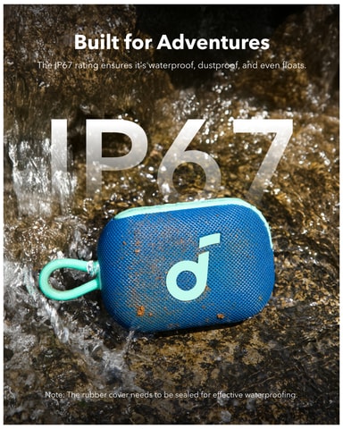 IP67-klassificeringen betyder att din högtalare tål de flesta av naturens element. Helt damm- och vattentät, denna högtalare kan till och med flyta på vatten.