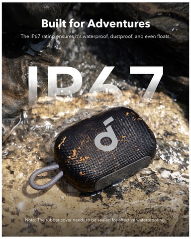 IP67-klassificeringen betyder att din högtalare tål de flesta av naturens element. Helt damm- och vattentät, denna högtalare kan till och med flyta på vatten.