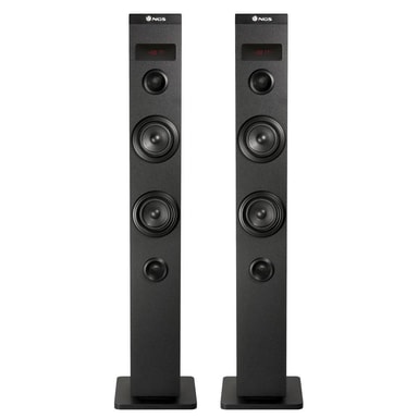 Har flera anslutningsmöjligheter: optisk ingång för att ansluta till en TV, kompatibel med Bluetooth, Audio USB-ingång, FM-radio och AUX IN.Koppla ihop 2 torn i stereo tack vare ljudkabeln, från huvudtornets ljudutgång till det sekundära tornets ljudingång. Det sekundära tornet svarar bara på huvudtornets kommandon.Har flera anslutningsmöjligheter: optisk ingång för att ansluta till en TV, kompatibel med Bluetooth, Audio USB-ingång, FM-radio och AUX IN.Koppla ihop 2 torn i stereo tack vare ljudkabeln, från huvudtornets ljudutgång till det sekundära tornets ljudingång. Det sekundära tornet svarar bara på huvudtornets kommandon.Anslut bara din hemmabio, TV eller någon annan enhet via Bluetooth.Lyssna på MP3-filer som finns lagrade i ditt USB-minne i timmar och njut av dina favoritspellistor.Den har även FM-radio med förinställda stationer för att bli en fantastisk multimediaspelare.Använd USB-porten för att ladda din Bluetooth-enhet medan du lyssnar på din favoritmusik.Total kontroll över din musik tack vare den medföljande fjärrkontrollen.Snygg och minimalistisk design med svart yta och ett underlag för att stå på golvet som passar alla utrymmen.Träfinish av hög kvalitet som ger bättre ljudkvalitet.FÖRPACKNINGSINNEHÅLL- Skycharm- Ljudkabel med jack 3, 5 mm- Strömadapter- Fjärrkontroll- Bruksanvisning (11 språk)- Garantikort