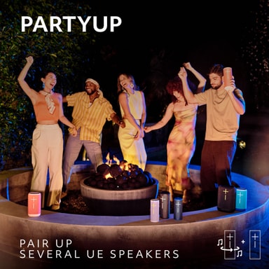 Skapa ett intensivt surroundljud i stereo genom att ansluta flera högtalare tillsammans. Du kan ansluta den här högtalaren till andra MEGABOOM-, EVERBOOM-, EPICBOOM-, HYPERBOOM- och BOOM-högtalare för att uppleva nästa nivå av festlivet.