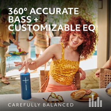 Bluetooth-högtalaren kommer med tekniken vilket garanterar ett fantastiskt ljud i varje hörn av ditt rum. Ljudet från UE BOOM 4-högtalaren blir mycket fylligt, klart och balanserat med djup bas. Använd den anpassningsbara equalizern för att få ut det mesta av din musik.