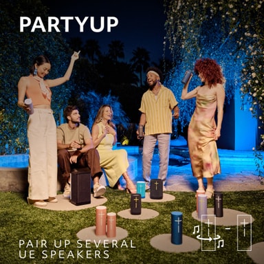 Skapa ett intensivt surroundljud genom att koppla ihop upp till 8 högtalare. Du kan ansluta denna högtalare till andra MEGABOOM-, EVERBOOM-, EPICBOOM-, HYPERBOOM- och BOOM-högtalare för att uppleva nästa nivå av festlivet.