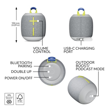Ultimate Ears WONDERBOOM 4 med levererar otroligt 360-graders surroundljud med specialiserade lägen för utomhuslyssning och podcasts. Med 14 timmars speltid och IP67-klassificering kan du ta med din musik var du vill.Läs mer om produkten