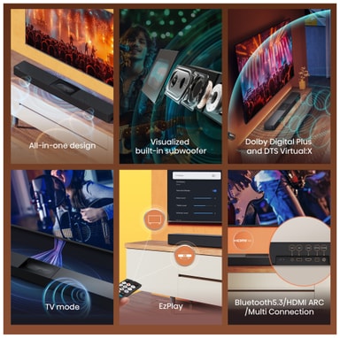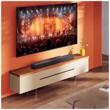 Denna soundbar levererar en Dolby Atmos och DTS Virtual-X ljudupplevelse som omsluter dig och drar in dig mitt i händelsernas centrum. Den kombinerar två huvudsakliga ljudkanaler med en subwoofer för ett mer omslutande ljud.