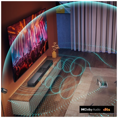 Kliv in i världen av Dolby Atmos och DTS Virtual-X som levererar ett fantastiskt ljud fullt av rikedom och djup. Dessa ljudteknologier levererar flerdimensionellt ljud och får musik, människor eller andra saker att komma till liv och får dig att känna att du befinner dig mitt i berättelsen.