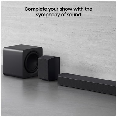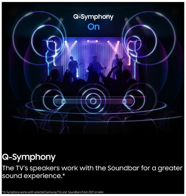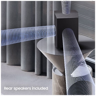 Para ihop denna soundbar med vilken kompatibel Samsung-TV som helst för att skapa en otrolig ljudscen där din TV, soundbar och TV-högtalare arbetar i perfekt harmoni. Resultatet är ett omslutande surroundljud som du inte lätt kommer att glömma.