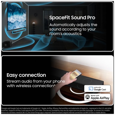 • Airplay 2, Chromecast, HDMI, eArc