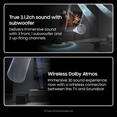 Para ihop denna soundbar med vilken kompatibel Samsung-TV som helst för att skapa en otrolig ljudscen där din TV, soundbar och TV-högtalare arbetar i perfekt harmoni.