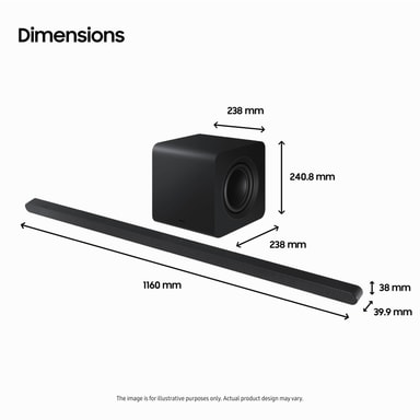 Denna soundbar är designad på Samsung Audio Lab och ger en otrolig ljudupplevelse som kommer att imponera på alla som har turen att höra den. Den kombinerar tre huvudljudkanaler med en subwoofer och två uppåtriktade kanaler för ett rumsfyllande ljud.