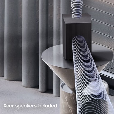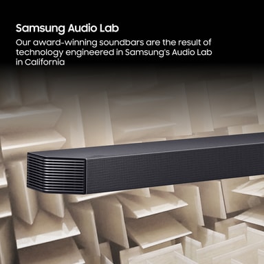 Designad vid Samsung Audio Lab levererar denna soundbar nio främre och surround-kanaler, en subwoofer-kanal och 2 avtagbara bakre högtalare med 2 kanaler vardera för att ge dig ett otroligt surroundljud.