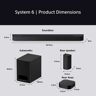 Sony Bravia Theatre System 6 soundbar låter dig helt försjunka i ljudet från din favoritmusik eller dina favoritfilmer. Njut av ett komplett paket med en 5.1-kanals soundbar, subwoofer och 2 bakhögtalare som levererar fantastisk ljudkvalitet tack vare Dolby Atmos, DTS-X och DSEE-teknik. S-Force PRO Surround Engine kombinerar vertikalt och horisontellt surroundljud medan Stereo Party Mode ser till att alla dina högtalare är synkroniserade.