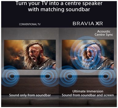 Det bästa med BRAVIA är att du kan skjuta soundbaren under din BRAVIA TV och lås upp exklusiva funktioner! Acoustic Center Sync förvandlar din TV till mitthögtalare, Voice Zoom 3 förbättrar dialogen och mer.